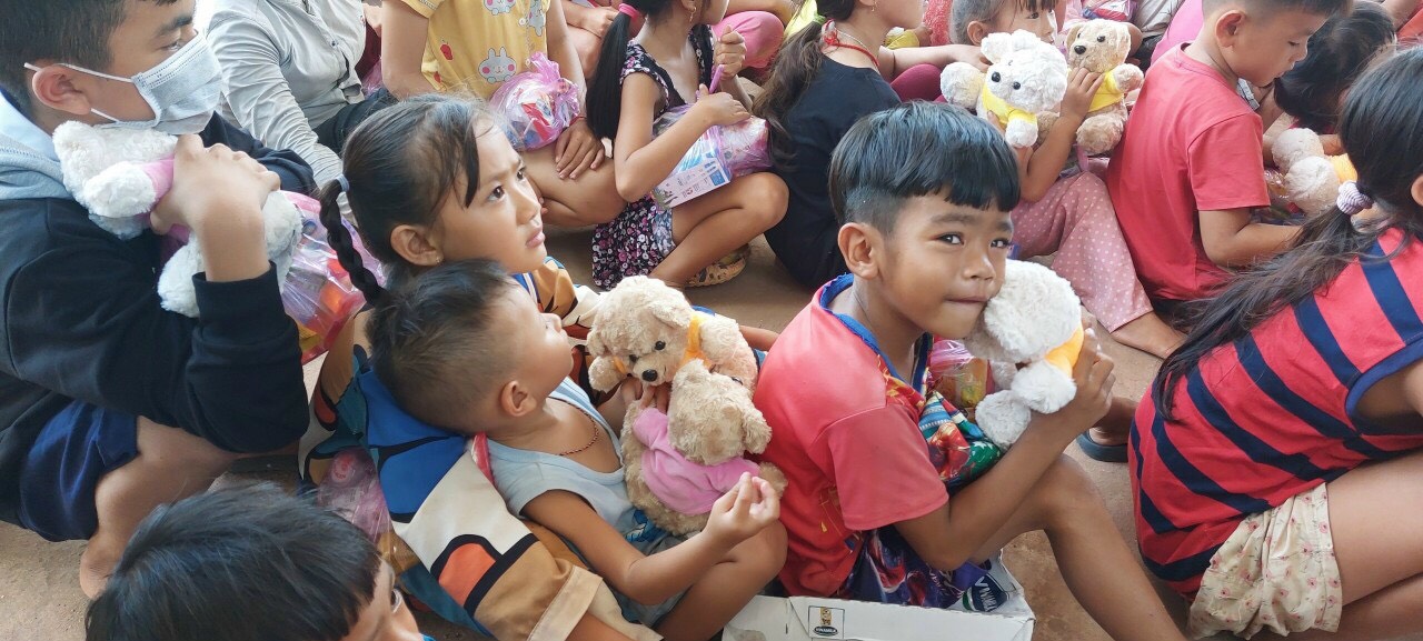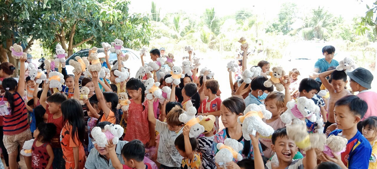 Cảm nhận được tình yêu thương khi các em cầm trên tay những chú gấu bông,